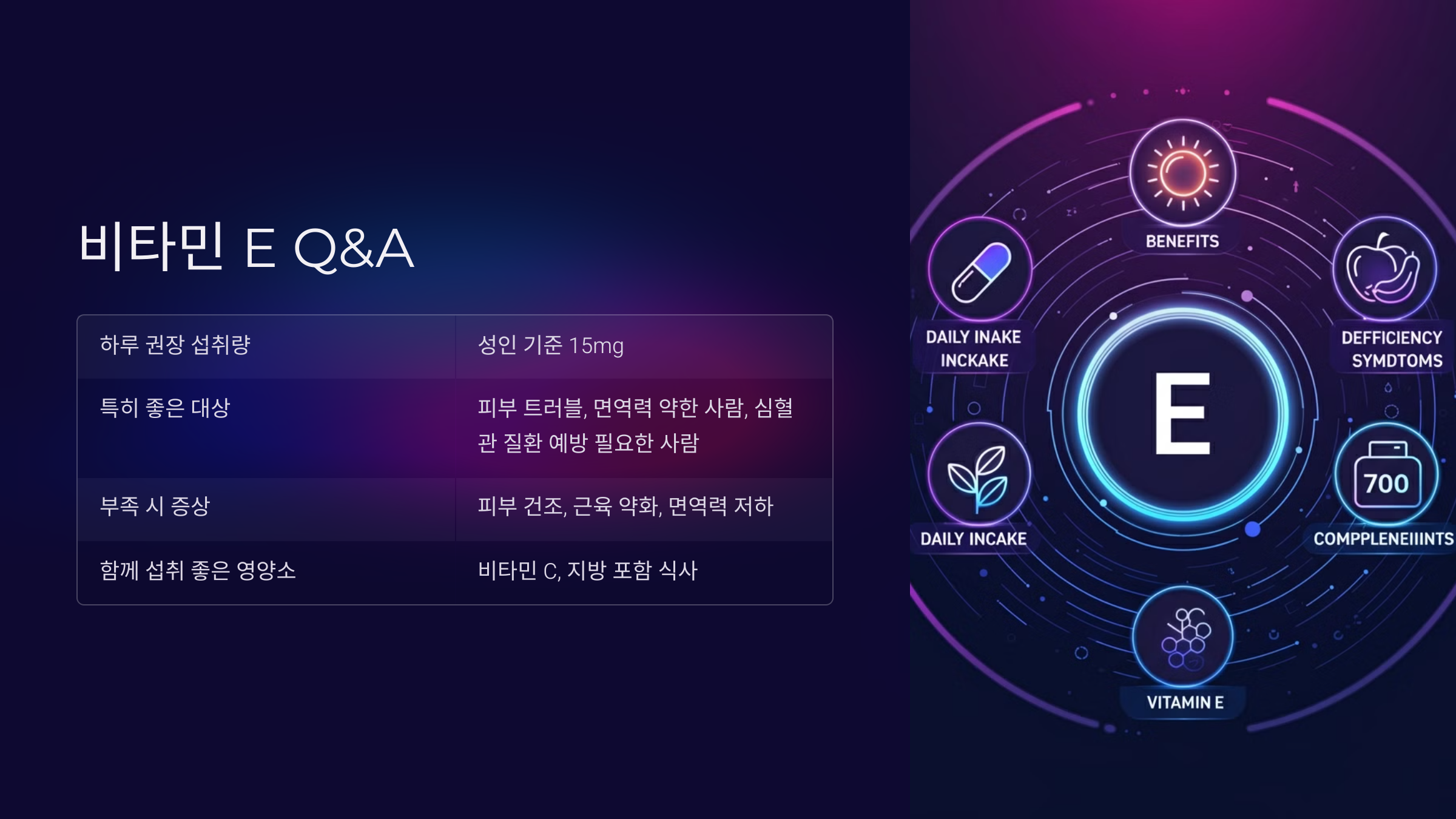 Q1. 비타민 E는 하루에 얼마나 섭취해야 하나요?