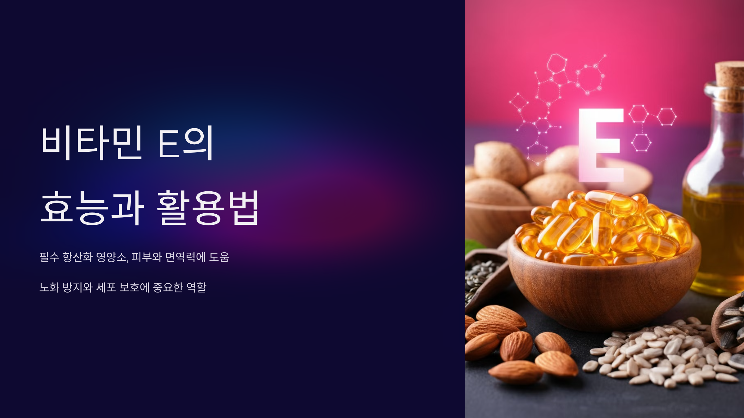 비타민 E는 우리 몸의 건강을 유지하는 데 필수적인 항산화 영양소입니다. 주로 피부와 면역력에 도움을 주는 이 비타민은, 노화 방지와 세포 보호에도 큰 역할을 합니다. 이 글에서는 비타민 E의 다양한 효능과 섭취 방법, 그리고 일상생활에서 어떻게 활용할 수 있는지 알아보겠습니다. 💪