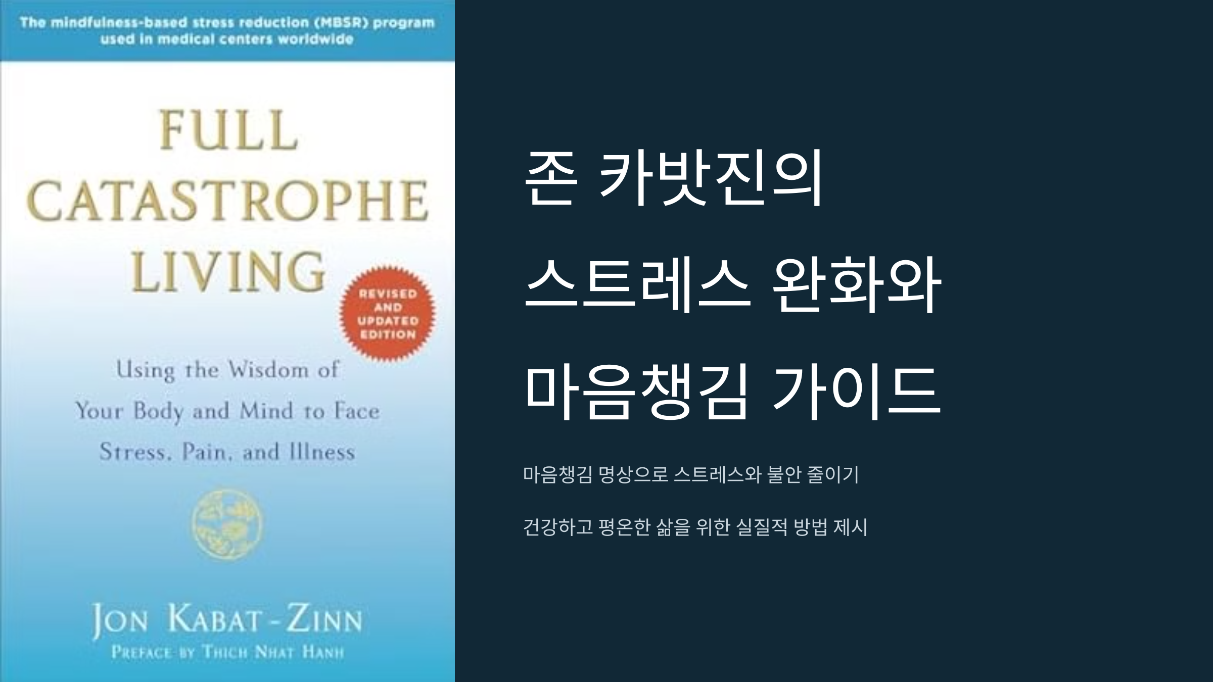오늘날 많은 사람들이 스트레스와 불안을 일상적으로 경험하고 있으며, 이를 관리하는 데 어려움을 겪고 있습니다. 존 카밧진(Jon Kabat-Zinn)의 *"Full Catastrophe Living"*은 마음챙김 명상(Mindfulness Meditation)을 통해 스트레스와 불안을 줄이고 더 건강하고 평온한 삶을 사는 방법을 안내하는 책입니다. 이 책은 마음챙김의 다양한 기법과 그 효과를 설명하면서, 스트레스를 줄이고 삶의 질을 높이는 실질적인 방법을 제시합니다.
